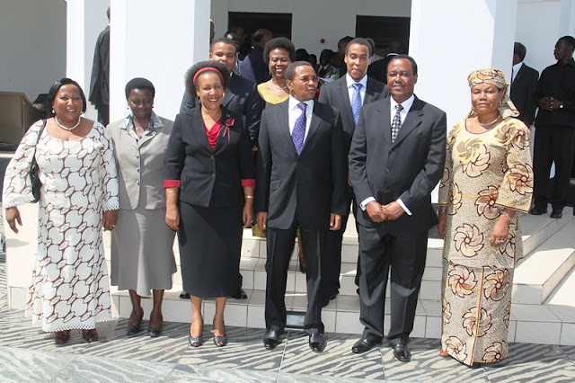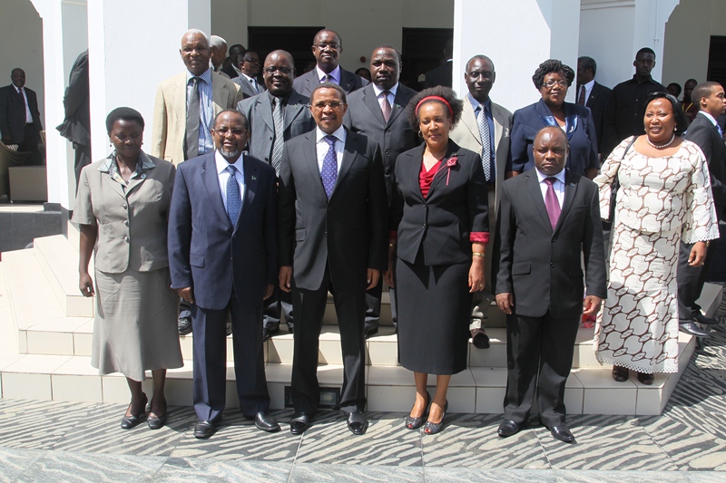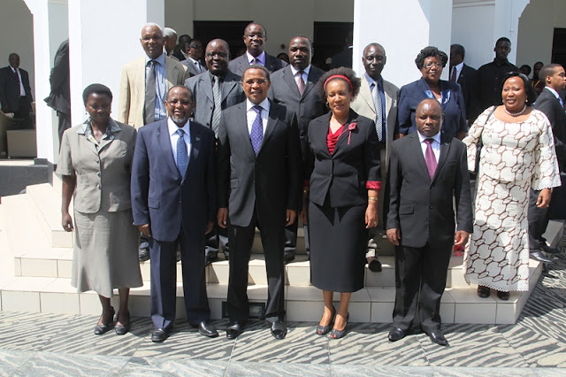 | Rais Kikwete na Makamu wa Rais Mh Mohamed Ghalib Bilali na Katibu Mkuu Kiongozi Balozi Ombeni Sefue wakipozi na Makatibu wakuu hao baada ya kuapishwa |